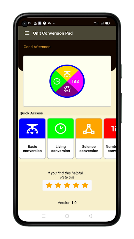 Unit Conversion Pad is a simple and easy to use utility app that will help you for your everyday conversion need. It has 5 converters that are categorized into Unit converter, Base converter, Color converter, Body Mass Index and Sizes chart.