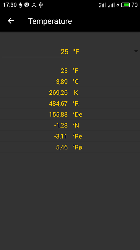 aplikasi mengkonversi satuan-satuan seperti panjang, berat, volume, suhu, luas, tekanan, energi, daya, gaya, waktu, kecepatan, sudut, bahan bakar, data, arus, densitas, potensial listrik, aliran, induktansi, luminansi, radiasi, ketahanan , suara dll.