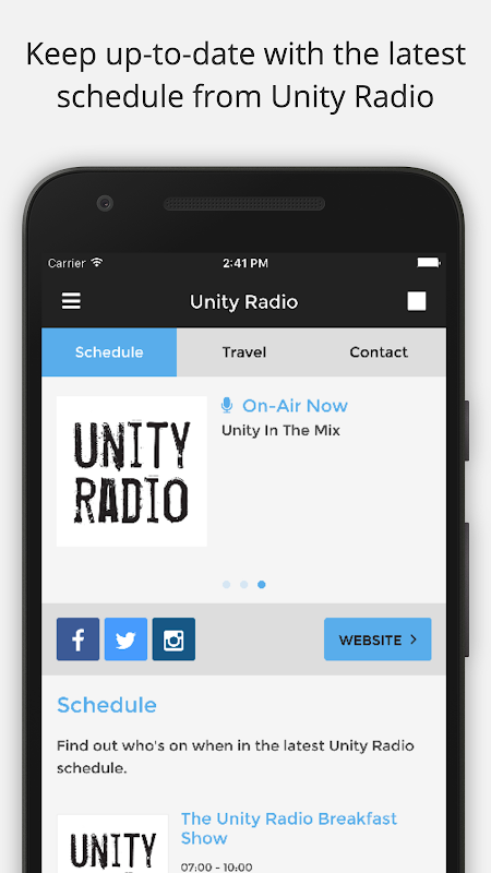 Persatuan Radio siaran di FM 92,8 dan juga global melalui www.unityradio web. Ikuti kami di twitter @unityradiofm dan Instagram @unityradiofm dan Facebook pada officialUnityRadio