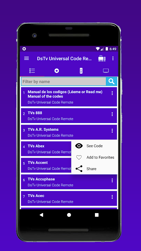 Los Códigos del controlador remoto de tu DStv Universal esta app te permite seleccionar rápidamente miles de códigos de fabricantes de tv para que pueda configurar su mando o (Control) para la televisión. Codigo de controlles universales de DStv, Codigo de controlles universales Para DStv