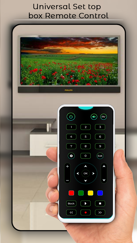Aplikasi Universal Set Top Box Remote Controller yang memungkinkan pengguna untuk menangani Set Top Box dengan perangkat pintar Anda. Ini memiliki Antarmuka Pengguna yang Jelas untuk menggunakannya dengan mudah dengan ponsel cerdas Anda. Sebuah aplikasi yang terbaik untuk menggunakan ponsel cerdas Anda sebagai Pengendali Jarak Jauh Set Top Box. Cukup instal aplikasi ini dan ponsel Anda akan dapat mengontrol Set Top Box dari jarak jauh. Aplikasi ini dengan mudah menangani Set Top Box Anda dengan ponsel.