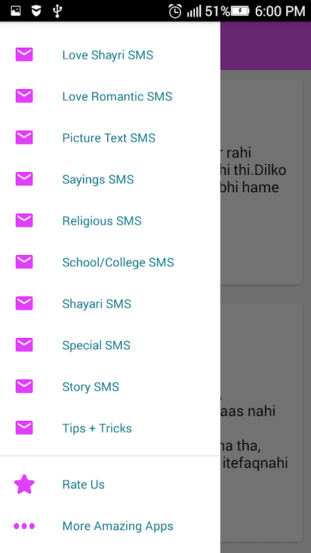 Dalam aplikasi puisi sms urdu ini Anda akan menemukan banyak jenis puisi. Kumpulan puisi urdu sms besar untuk kategori yang berbeda. Anda dapat mengirim puisi di platform media sosial. berikut adalah beberapa fitur