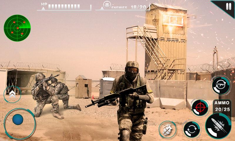 Us Army Commando Frontline Special Group Forces an action packed adventure filled game of Special Forces who have joined hands to fight off the brutal enemy troops on US border. The heroes are up for the real war. You are on the call of war. Lead army commando war against terror and crime with help of trained IGI commandos in battlefield. Eliminate gangs of terrorists, clear border area and bring peace back in desert areas around. Step forward from your army base camp to clear and kill enemies. Be brave to show your courage in frontline commando assault war.