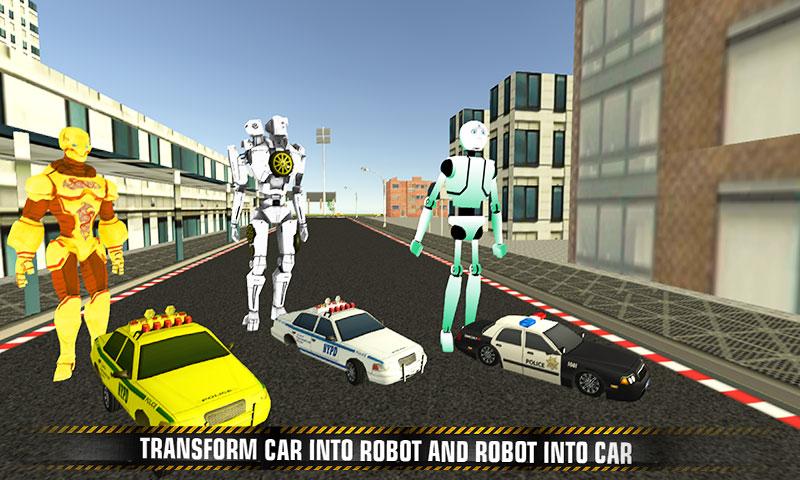 Car Robot Transform Superhero is an amazing blend of robot motor car racing, robot transformation into car, criminal car chase and car destruction adventure. There will be an epic police robot transformation into heavy police car with super firing power that will destroy the criminal squad in the car completely. If you're excited to futuristic car games and robot games you will enjoy playing Police car Robot Simulator. Your us police car is equipped with a special modern weapon to aim and shoot the opponent transformable robots, missed in any other police games. Become an expert police robot shooter and eliminate criminal war robots from the city. Download this police robotic car SIMULATOR and enter into the world of excitement.