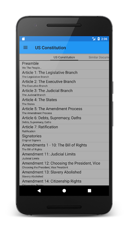 Konstitusi Amerika Serikat untuk Android. Ini termasuk tema Android Material baru, dan dapat disesuaikan baik Terang atau Gelap.