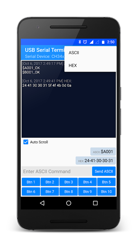 - Pemantauan menerima data sebagai ASCII atau HEX.