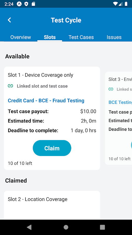 Users now able to Preview test cases linked to Slots prior to Claiming.