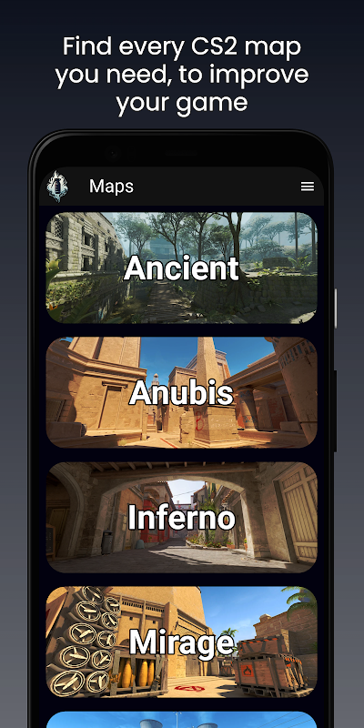Pilih dari pustaka susunan pemain lengkap untuk semua peta CS2 — Mirage, Inferno, Dust II, Nuke, Overpass, Anubis, dan lainnya. Setiap titik utilitas ditampilkan di peta yang detail, termasuk posisi lemparan dan titik bidik yang tepat.