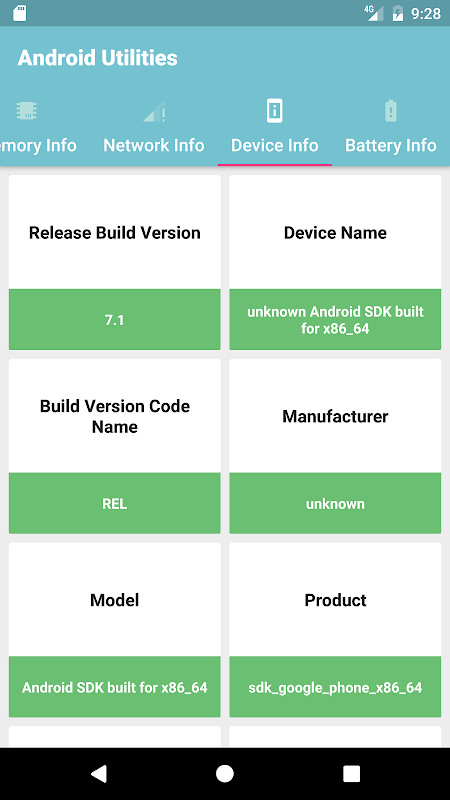 Util Lib: Izin, Memory, Battery, Info Perangkat, Jaringan, Soft Keyboard.