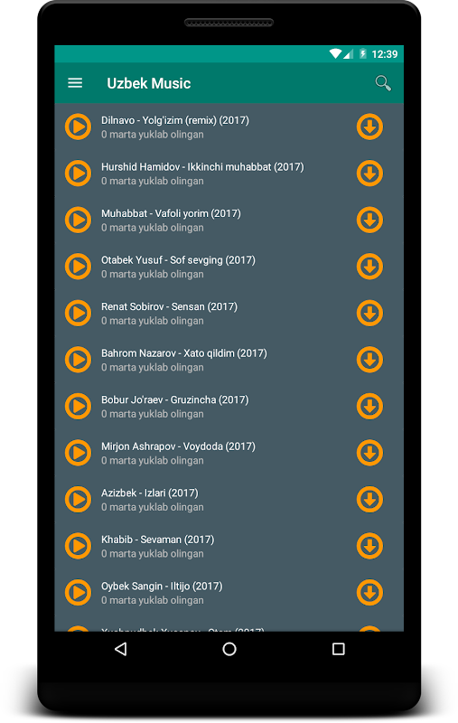 Ўзбекистоннинг энг янгилар ва энг машҳур кушиклар бир иловада. бепул скачивай mp3 турли металлар қотишмасининг ўзига мобил телефон. Фойдаланасиз қулай излаш билан учун севимли хиты топиш ўзбекча тилдасига. Фақат энг яҳши ўзбекча музика!