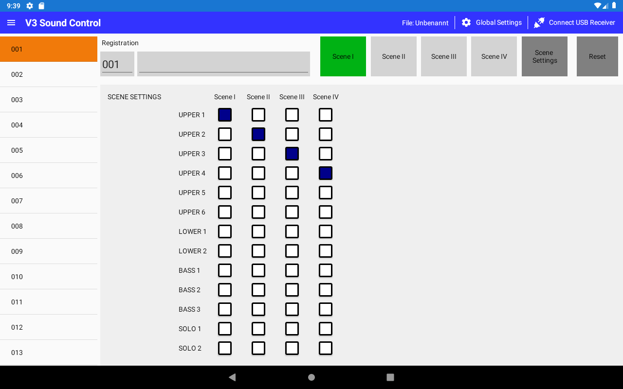 Aplikasi mengirimkan parameter melalui Bluetooth dari tablet ke penerima Bluetooth, yang terhubung ke port USB V3 Sound Expander. Keyboard MIDI terhubung ke V3 Sound Expander menggunakan kabel MIDI standar.