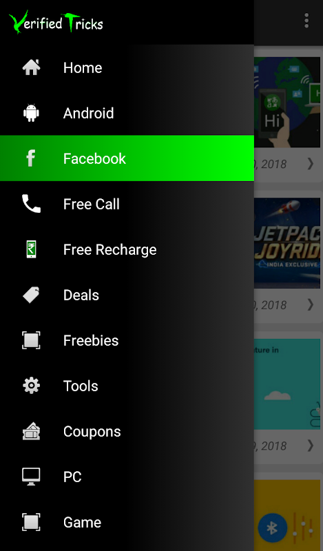 3. Sorting out posts:-Easily sort out the posts on our website on the basis of various categories from the Menu bar of our app,like Games,Facebook,Android etc clicking on any category sorts out all the posts under that category ,to let you see what you actually want to see.