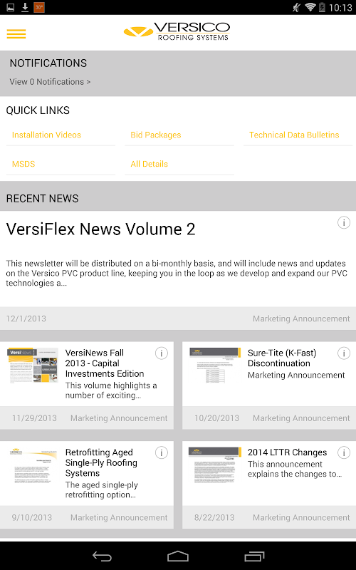 The new Versico Roofing Systems mobile app provides you with instant access to the news, content and installation information that you need. The app syncs seamlessly with your Versico Roofing Systems website profile, so you can access the resources you need from anywhere, at any time – all from your mobile device. Key features of the new Versico Roofing Systems App include: