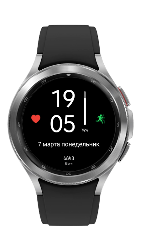 Tombol jam untuk Wear OS. Tiga komplikasi yang dapat diedit. Desain minimalis.