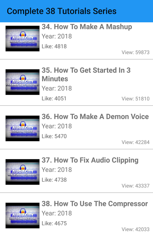 Audacity is an open source free software used by millions of sound professionals all over the word to create industry standard audio files. This app is a collection of video tutorials that includes Beginner Tutorials, Intermediate Tutorials, Advanced Tutorials of audacity which is especially useful for learners. It also includes complete 38 Tutorial Series and many useful tips for Audacity.