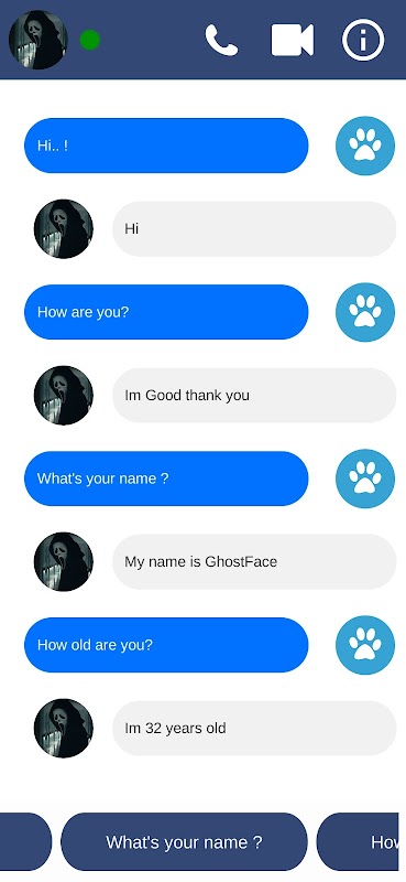 Ghost Calls & Video Calls & Chat Simulator app simulates incoming calls, video calls and conversations with the scary character Ghost Face with audible in the background and from his home (in the case of a live video call). With just one click you can have a scary experience of talking to scary ghosts, this is an easy app to use for entertainment purpose or if you want to prank your friends and family and see their funny reactions, look at the calls looks very realistic and you will think that you are really talking to Scream .
