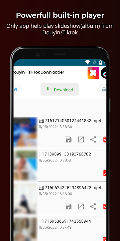 "Unduh video Douyin tanpa logo" mendukung Anda untuk mengunduh video dalam format MP3, MP4 di perangkat Android apa pun.