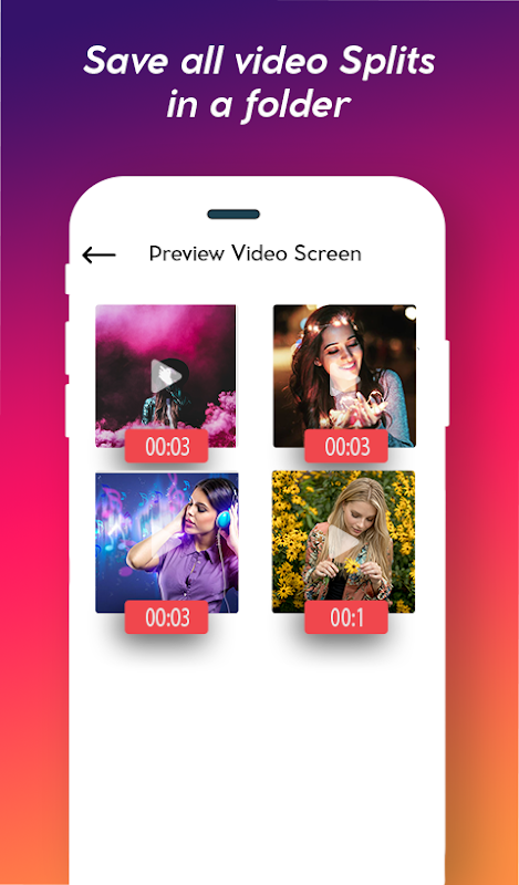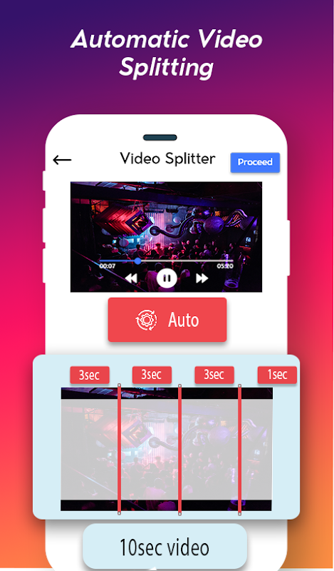 Pemisah Video Otomatis: Fitur pemisahan video otomatis membagi klip menjadi cerita video 5 detik, 10, 15, 20, 25, dan 30 detik. Pembagi video untuk status menghemat waktu untuk membagi cerita video.