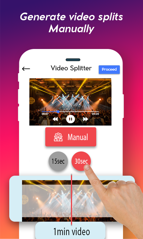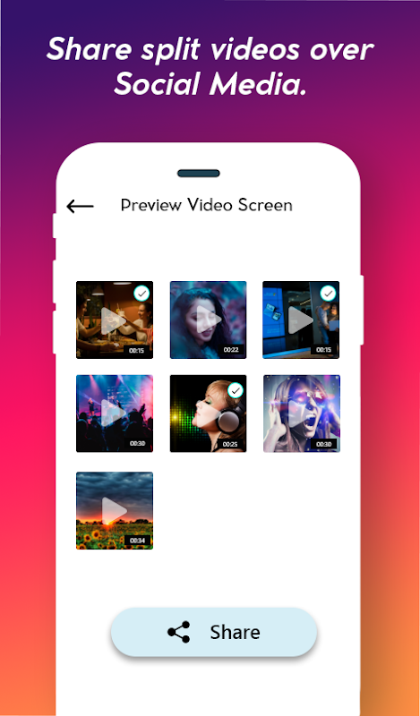 Pemotong Cerita Sosial untuk Status: Pemotong Cerita langsung memotong video cerita dan membagi video cerita ke panjang yang diperlukan. Aplikasi splitter Video terbaik membagi video panjang menjadi status video 30 detik dan klip 15 detik untuk cerita.