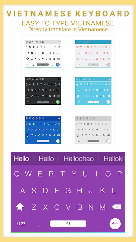 Ketik Lebih Cepat dalam bahasa Vietnam. Keyboard mendukung tema, GIF, dan Emoji.