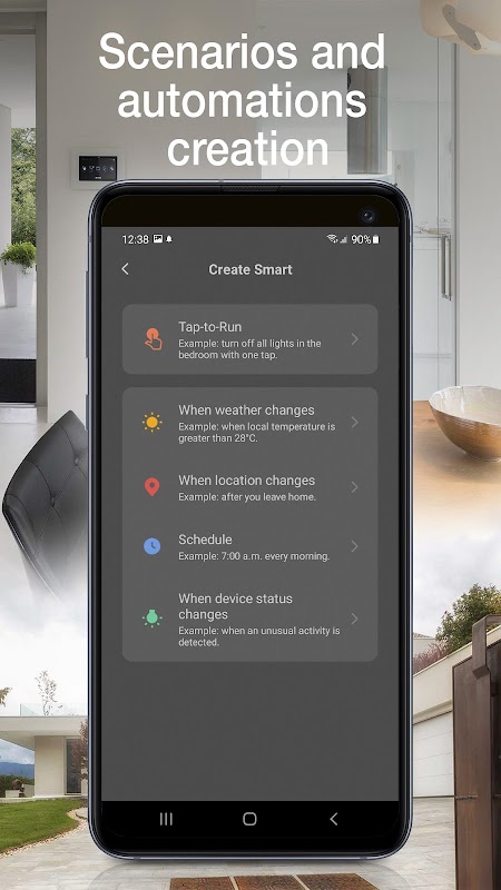 • membuat produk yang terhubung melakukan tindakan otomatis (skenario atau otomatisasi) tergantung pada kondisi tertentu, tanpa campur tangan manusia, bahkan menggunakan geolokasi.