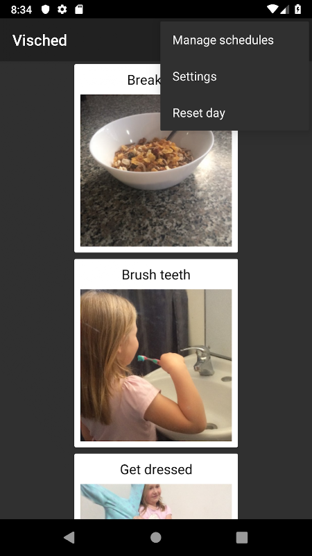 Visched dibuat oleh Ayah untuk anak perempuannya, untuk membantu mengomunikasikan kegiatan sehari-hari mereka sedikit lebih mudah, dan aplikasi akan terus berkembang sesuai dengan kebutuhan mereka. Permintaan fitur lebih dari diterima dan dapat dimasukkan dalam pembaruan di masa mendatang.