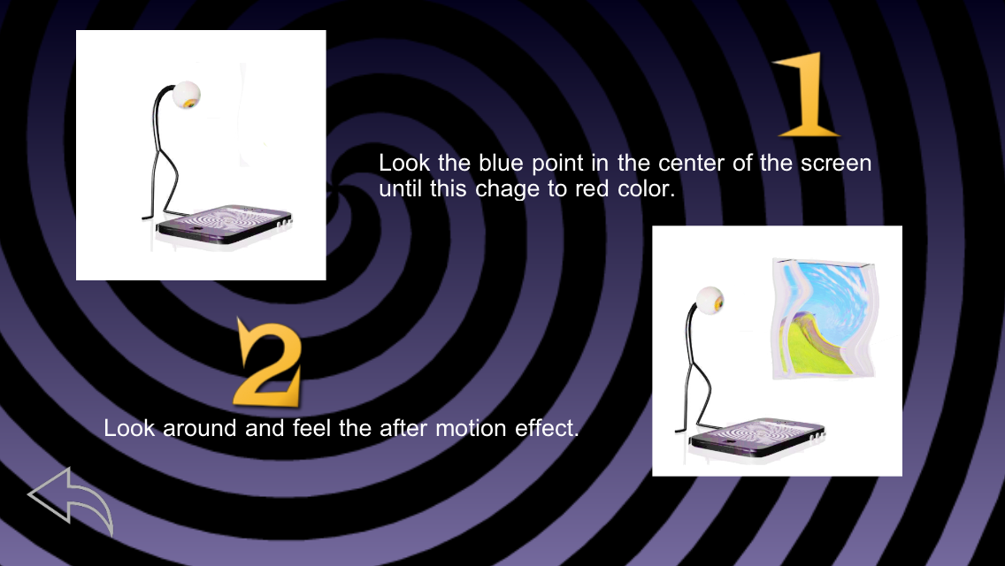 Lihat titik merah di tengah layar selama 30 detik lalu lihat sekeliling Anda untuk merasakan efek lanjutan Motion.