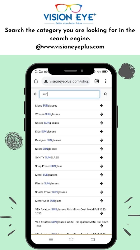 EYEGLASSESES : Serving an enormous variety of frames , trying to precedence our own brand VI-SIGHT,SYNITY adding handful of features on our website,offering color pallet, comprehensive details about the product.