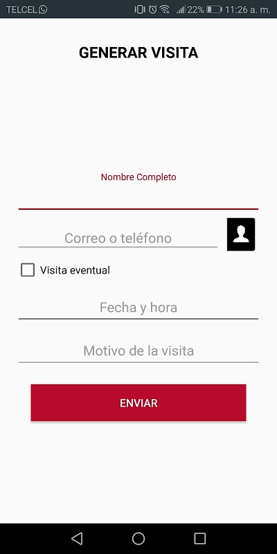 Jaga kontrol yang tepat terhadap pengunjung dan pemasok dan lupakan catatan manual, dengan Aplikasi ini Anda dapat mengontrol akses semua jenis pengguna yang ingin mengunjungi karyawan Anda, karena ini memberi tahu karyawan ketika pengguna ingin memiliki akses memiliki kesempatan untuk menerima , tolak, jadwalkan ulang kunjungan tersebut atau kirimkan ke karyawan lain agar dapat dihadiri. Selain itu, memiliki kendali untuk mengetahui apakah janji temu sudah dihadiri dan diselesaikan dengan membaca QR, juga melihat foto-foto karyawan dan rekan yang sama.