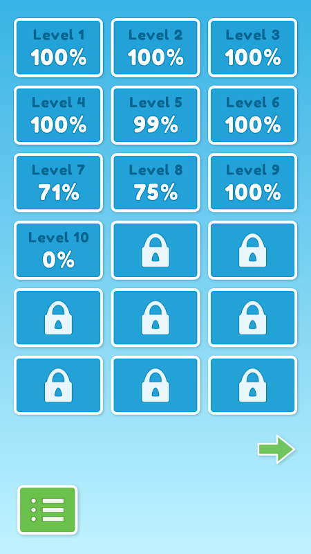 Permainan akan menunjukkan keberhasilan persentase. Jika sukses lebih besar dari game 50% membuka level lebih keras berikutnya.