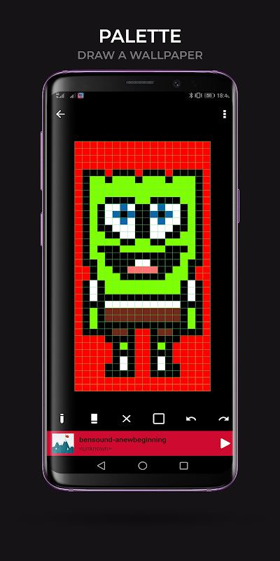 Buat wallpaper pixel art Anda sendiri, yang membuat pemutar audio Anda begitu istimewa dan unik. Gambar karakter kartun favorit Anda, pahlawan super, karakter permainan (Mario, Sonic, ..) atau potret.