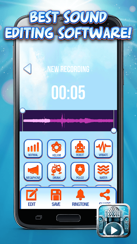Aplikasi modulator suara ini yang memungkinkan Anda untuk membuat manipulasi pidato dan membuat sebuah karya seni suara! Nyanyikan, berbisik, berteriak atau mengatakan apa pun yang Anda suka, tekan untuk merekam pembicaraan Anda dan memodifikasinya dengan menambahkan suara lucu dan efek audio lucu. Bicara seperti alien, mabuk, menggunakan efek gema, efek helium, memilih suara karakter kartun atau suara menakutkan. Dengan 🔊 Pengubah suara: Suara lucu untuk telepon iseng 🔊 Anda dapat prank menelepon teman Anda dan mengubah suara Anda dengan efek dalam waktu singkat.