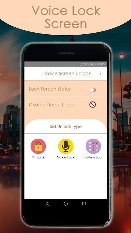This Smart Voice password Screen works on with your voice commands which makes your phone unique from others This voice Lock app also have provided a Keypad screen method with this voice password .This App also supports Pattern and PIN Code to help your phone get unlocked in case you does not get matched so no worry Screen If " Password Forgotten " if you forget Code there is also available pattern code so you can unlock your phone with other method and there is also forget password option too you can called this app Voice lock screen 2021.