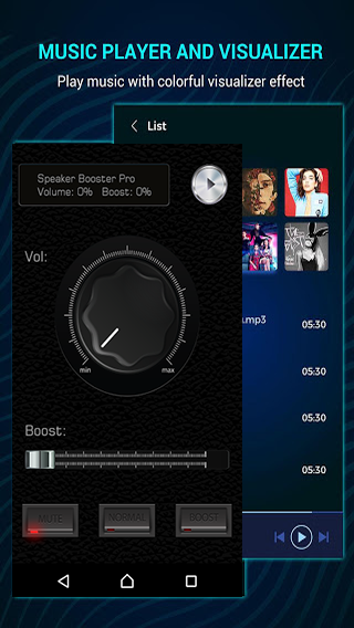 Pengeras Suara Speaker - Tingkatkan Suara Amplifier adalah alat visualisasi musik yang dirancang modern, yang dapat digunakan sebagai pemutar musik berfitur lengkap pada saat yang bersamaan. Dukungan Bass Booster sekitar 40 template memvisualisasikan