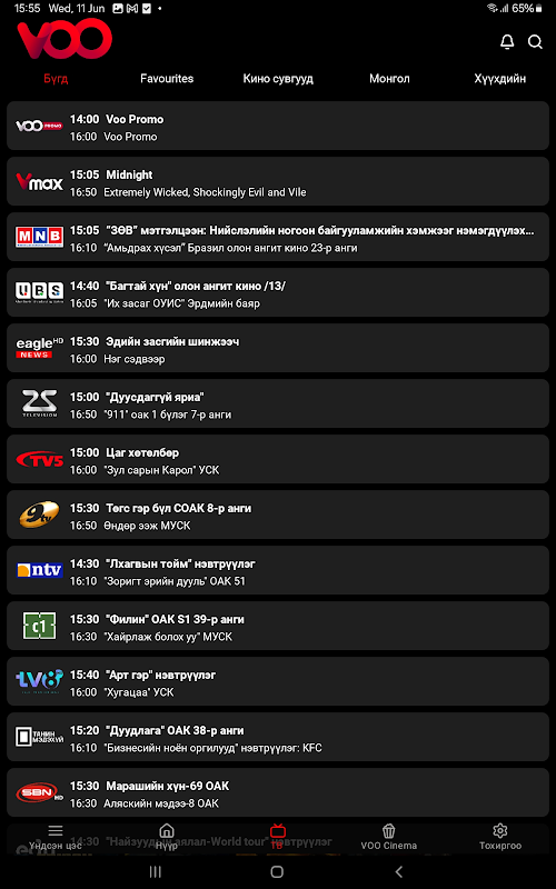 - Tonton semua jenis film dan acara TV Mongolia dan asing dengan hak resmi tanpa pembayaran tambahan.