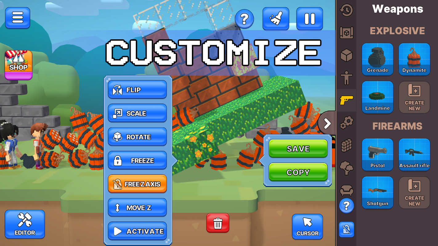 Three maps, two game modes, six characters, and endless possibilities for creativity and destruction.