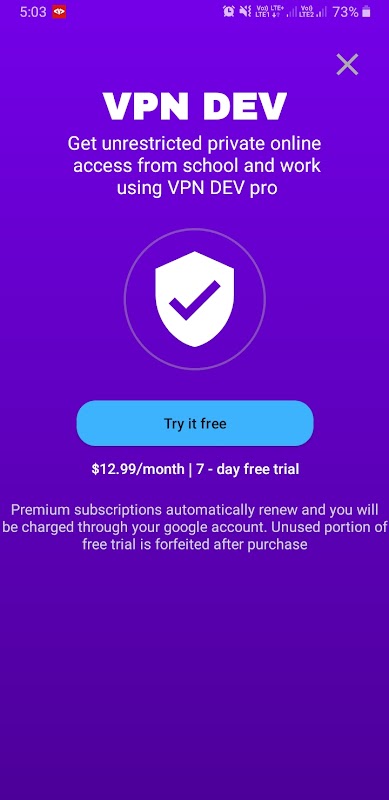 VPN DEV is a high speed, free, premium and anonymous VPN service for you to access all your favorite site or apps with VPN DEV on your Android Device, you can protect online Privacy, stay anonymous on public Wi-Fi, and stream anywhere you want. Download VPN DEV to Enjoy freedom now !