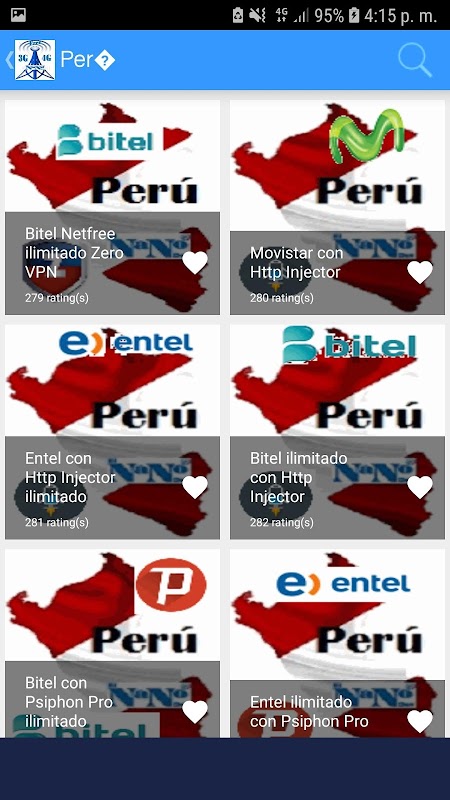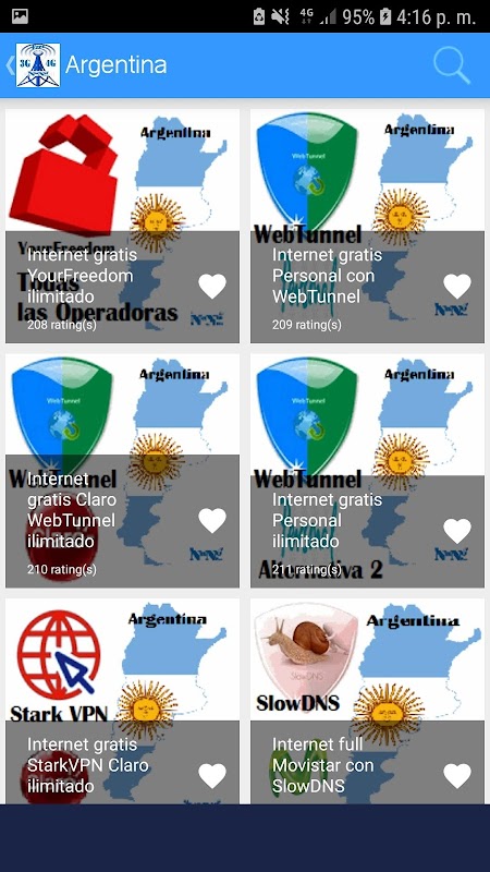 vpn para android está organizado por países, puedes buscar tu país y luego de acuerdo a la operadora elegir uno de los métodos para poder obtener datos gratis, estos métodos se van a ir actualizando porque siempre dejarán de funcionar.
