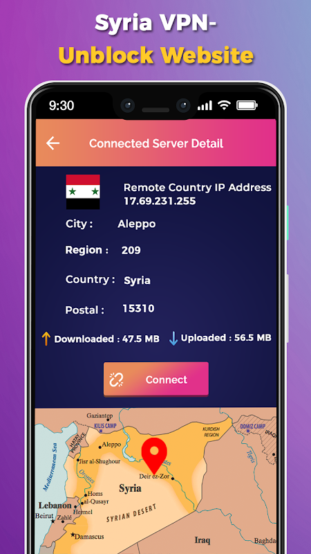 VPN Syria-Unblock Website has a smart User-interface to use this application to unblock any sites from your smart devices. Unblock your favorite websites and apps with the best worldwide VPN proxy whenever, wherever you want.