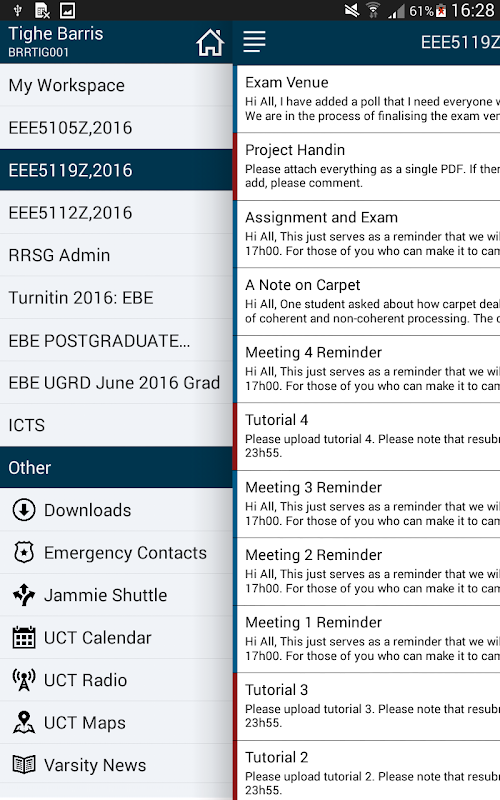 • Akses cepat ke jadwal Jammie Shuttle, peta UCT dan kalender UCT