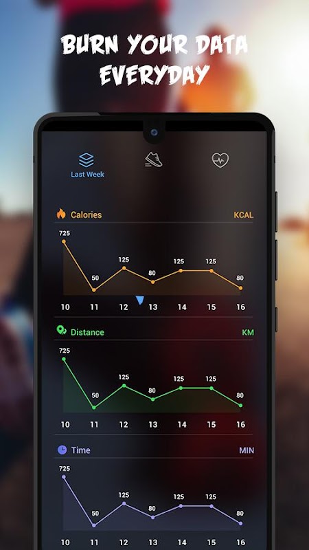 Count my steps instantly. "Walk Tracker" can record steps instantly, so you will get timely records about your steps. These records include number of steps, distance, time and burned calories etc. It will help your keep fit even your phone off hands.