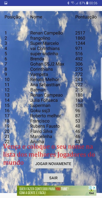 Baixe agora e mostre para os seus amigos que você consegue as maiores pontuações !!!