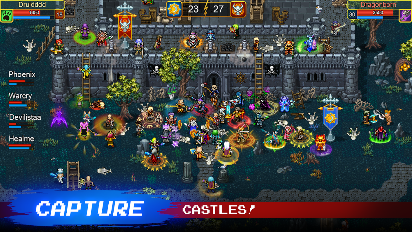 Join with fellow adventurers in guilds and parties, take part in guild battles for castles, and compete in weekly guild tournaments in rpg.