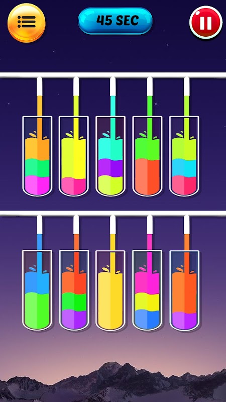 Di awal setiap level, teka-teki warna berbeda ditempatkan secara acak di papan pengurutan warna permainan. Botol warna jenis air ini antara lain merah, biru, hijau, kuning, oranye, dan ungu. Papan permainan memiliki banyak warna jenis teka-teki tabung kosong, masing-masing mewakili warna botol yang berbeda. Saat Anda maju melalui level, jumlah pipa dan warna pengurutan meningkat. Pemain harus menggunakan tombol seret dan lepas yang intuitif untuk memindahkan warna botol berwarna dari posisi awal ke tabung yang sesuai sesuai dengan permainan warna teka-teki mereka.