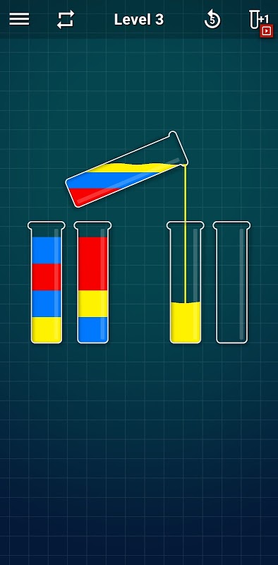 • Ketuk tabung mana saja untuk memindahkan air yang ada di atas tabung mana saja ke tabung lain