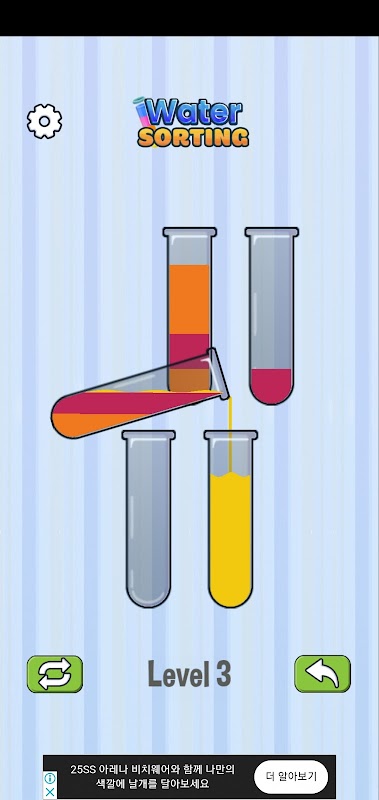 Water Sorting adalah Game Teka-teki Sortir yang Menyenangkan dan Menantang, di mana pemain harus menyortir cairan air berwarna ke dalam gelas kaca hingga semua warnanya sama untuk maju ke level berikutnya!