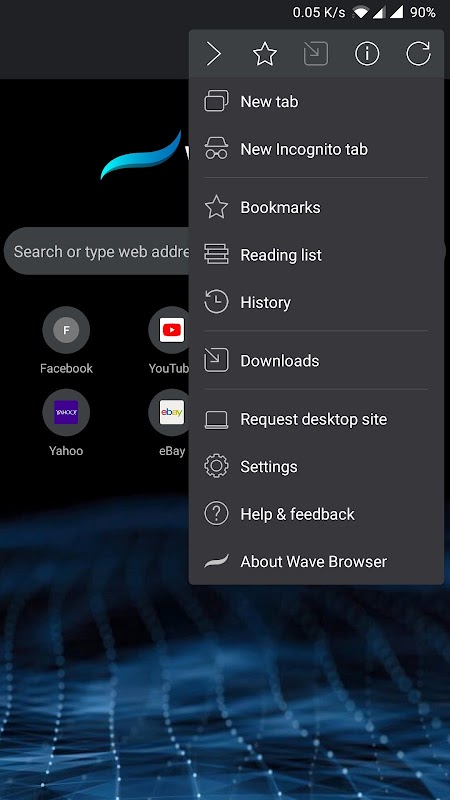 Wave Browser memampatkan data, mempercepat navigasi, dan membantu Anda menghemat lalu lintas data. Semakin banyak Anda menjelajah, semakin banyak data yang dapat Anda hemat dengan WaveBrowser.