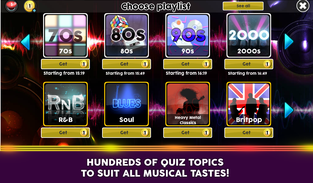 * MULTIPLAYER mode lets you play friends or strangers to identify 12 extracts from songs in a three-round Live Music Quiz.