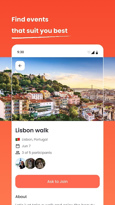 Anda dapat membuat pertemuan sendiri — jalan-jalan, perjalanan, olahraga, makan malam — atau bergabung dengan pertemuan yang diselenggarakan oleh orang lain. Ngobrol terlebih dahulu, pilih bahasa pilihan Anda, sesuaikan profil dengan minat Anda, dan terhubung dengan orang-orang yang memiliki minat yang sama. WBuddy memudahkan Anda untuk mengubah rencana sehari-hari menjadi koneksi di dunia nyata.