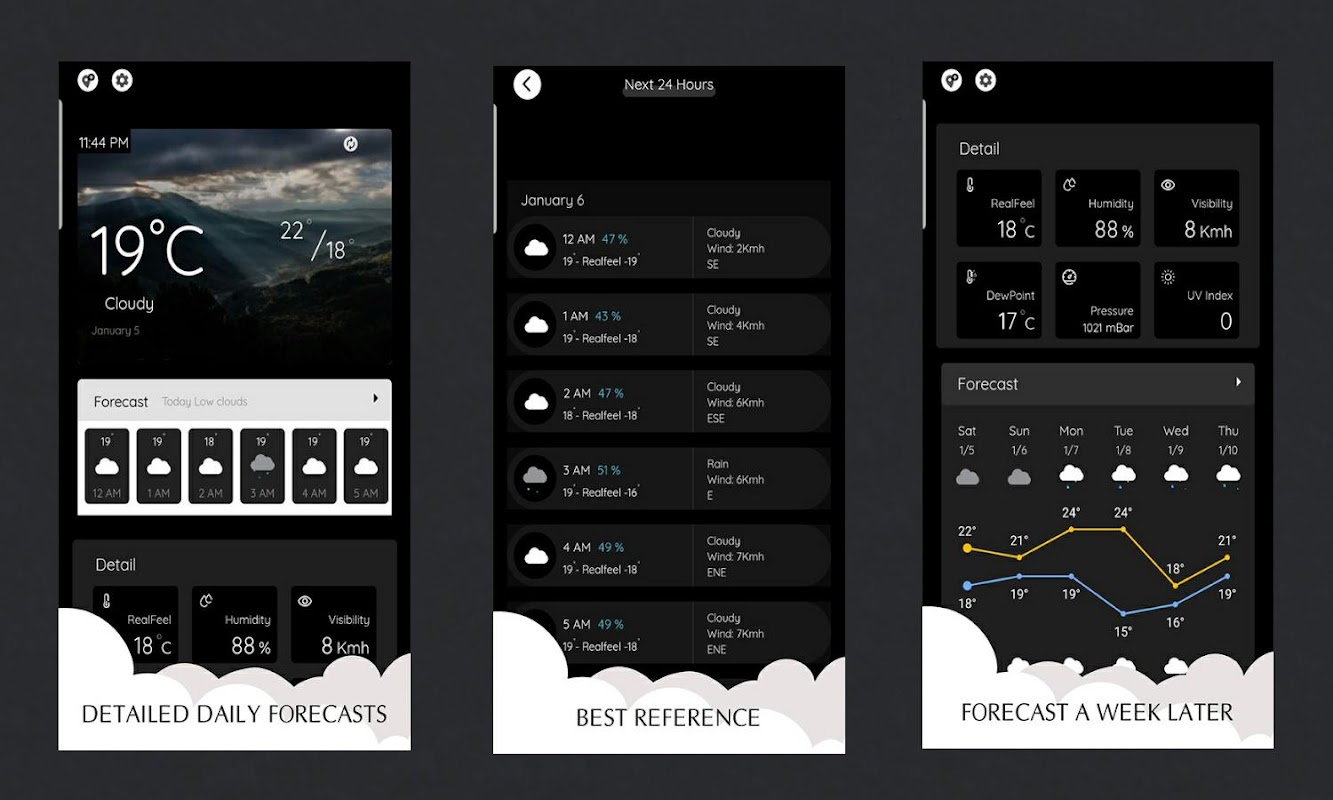 You will see weather information update hourly and accurately. Real-time temperature, rain, snow, humidity, pressure, wind force and wind direction.